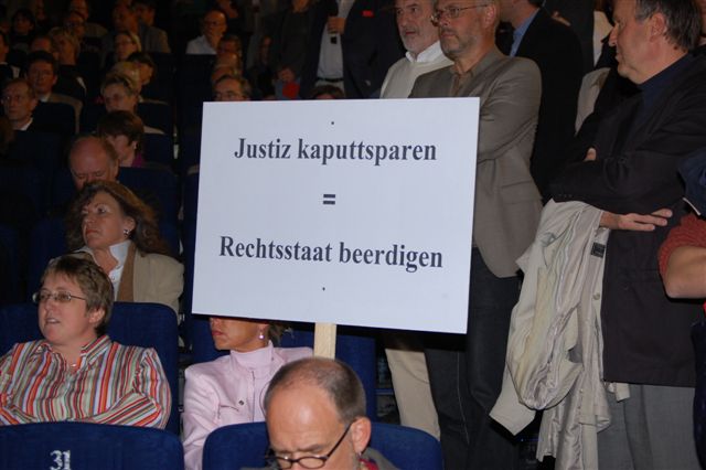 Am 29.04.2010 fanden sich 500 Richterinnen und Richter, Staatsanwältinnen und Staatsanwälte vor dem Justizministerium in Düsseldorf ein, um ihrer Forderung an die Politik Ausdruck zu verleihen, dass die Justiz personell so ausgestattet sein muss, dass sie ihre Aufgaben zeitnah erfüllen kann.