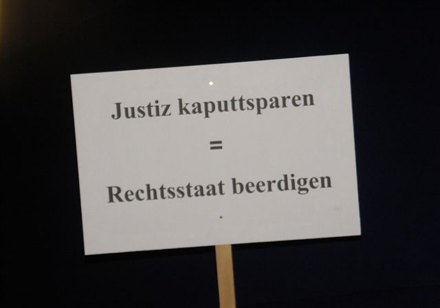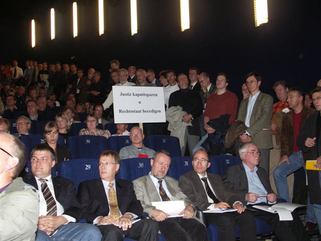Nicht mehr ganz neu, aber immer noch beeindruckend sind die Fotos von der Versammlung von Richtern und Staatsanwälten am 11.10.2007 im UCI-Kino in Düsseldorf (Medienhafen) und von dem anschließenden Demonstrationszug vor den Landtag: