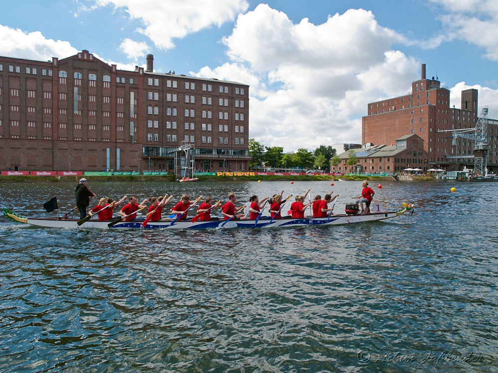 20 Paddler und eine Trommlerin gaben am 17. Juni 2012 beim Drachenbootrennen in Duisburg ihr Bestes. Nach drei Läufen erreichten sie Platz neun. Das war eine deutliche Steigerung zum Vorjahr.